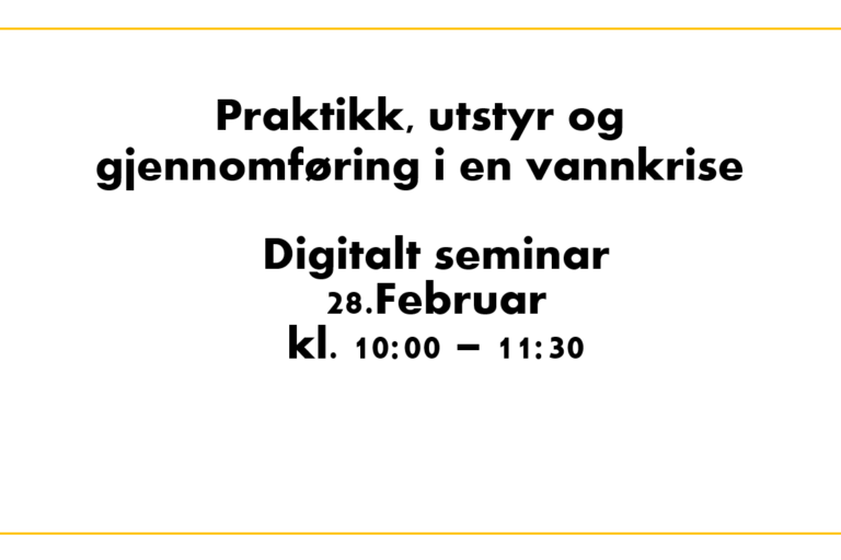 Digital Seminar 28.februar kl. 10-11:30: Praktikk, utstyr og gjennomføring i en vannkrise